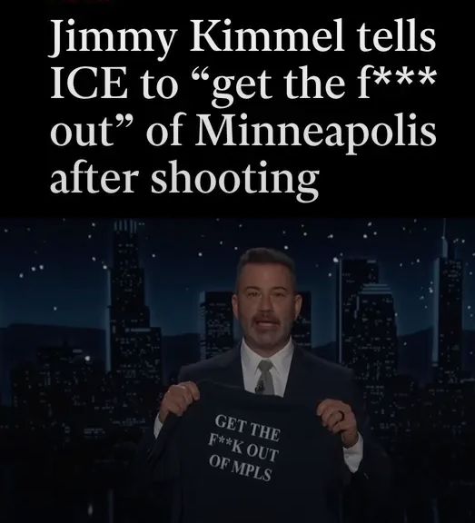 Jimmy Kimmel passionately told ICE to “get the f*** out” of Minneapolis after a 37-year-old woman was fatally shot by an enforcement agent during a large-scale immigration operation in the city Wednesday.