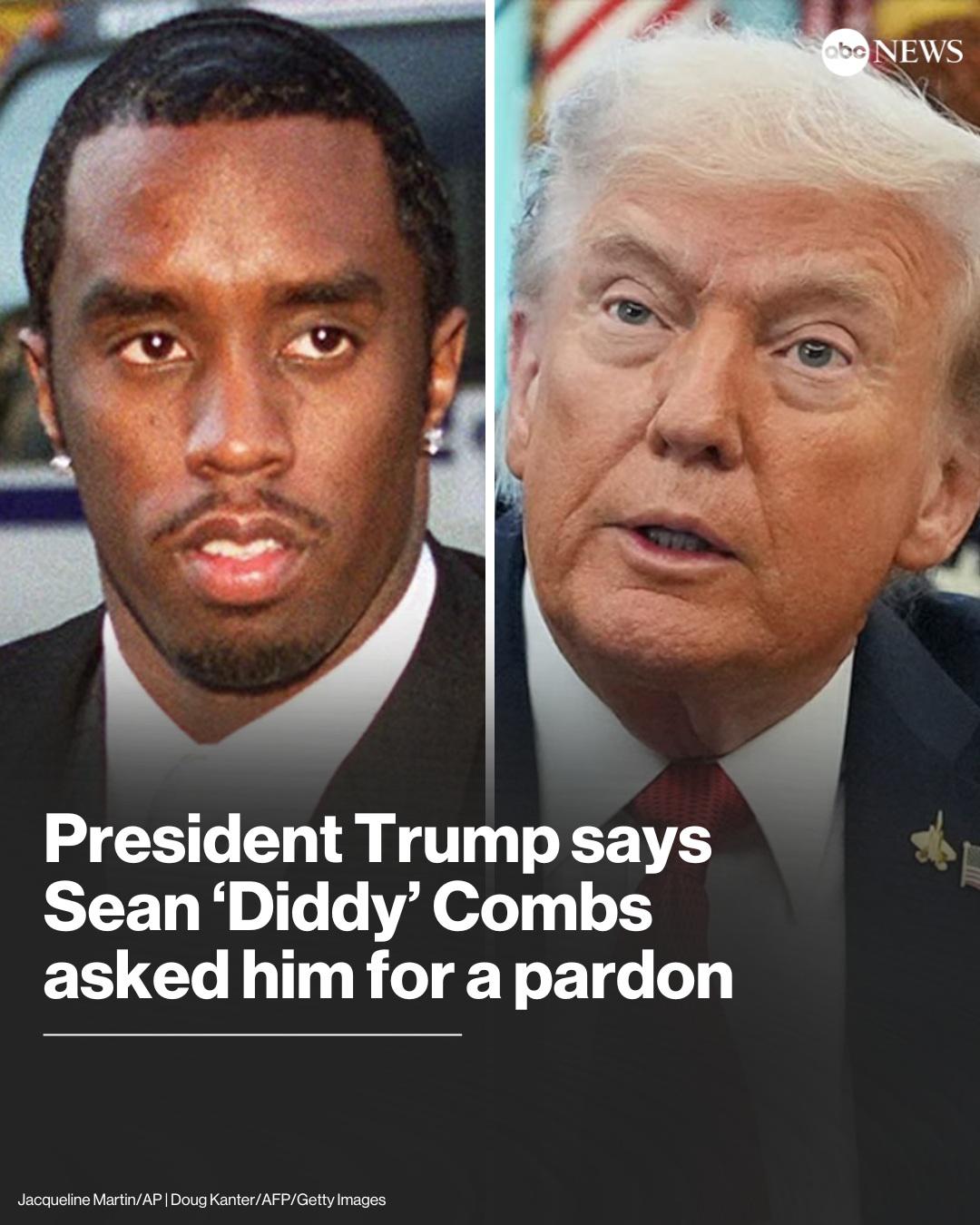 President Trump said Monday that Sean “Diddy” Combs has reached out to ask for a pardon following the rap mogul’s conviction on two prostitution-related charges.